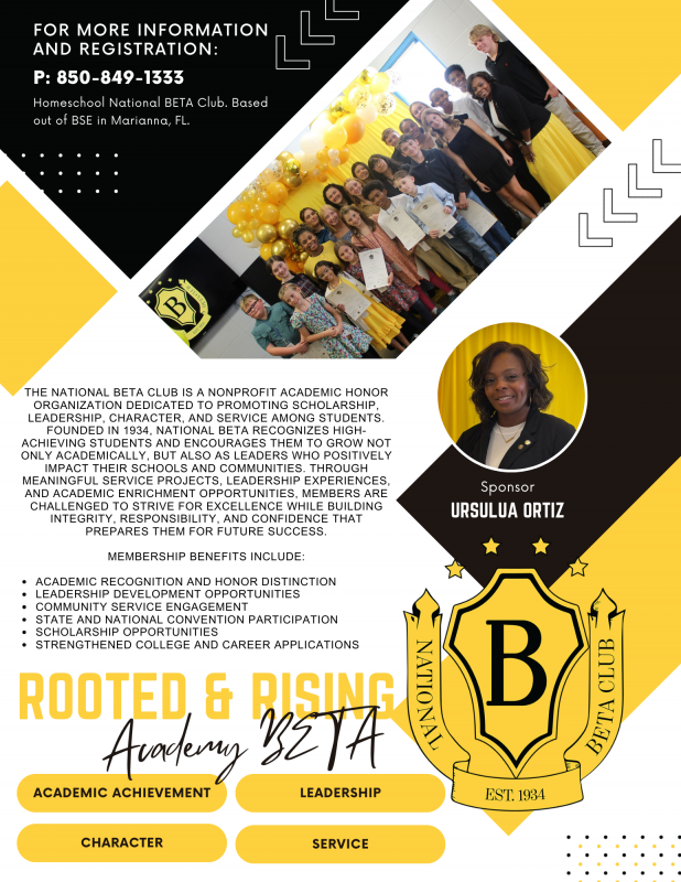 A homeschool Beta Club where students grow on leadership, service, character, and academics - all for God's glory.