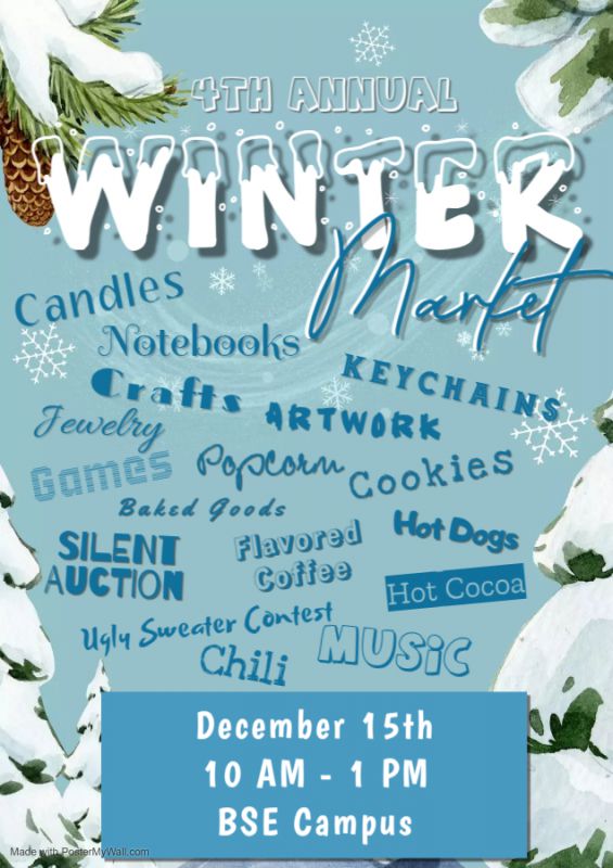 Join us for a festive and fun-filled event showcasing a variety of handmade goods, and specialty beverages, like hot cocoa and flavored coffee, all brought to you by our talented student vendors. This year’s market promises something for everyone!